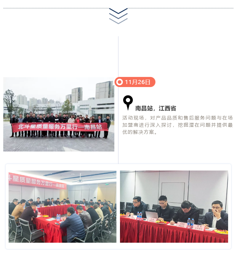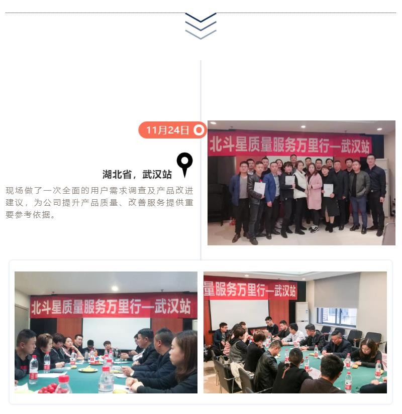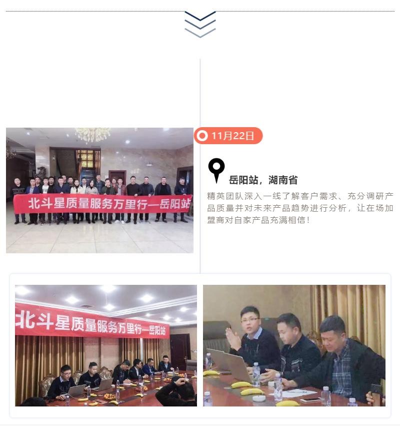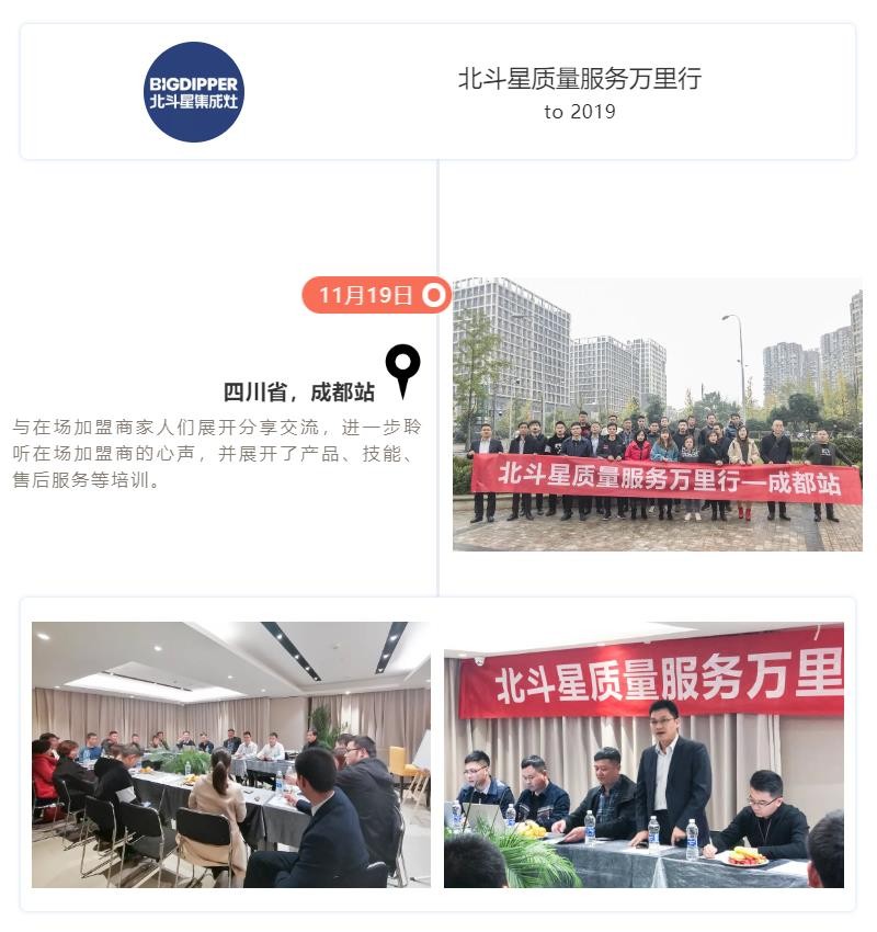 11月19日-12月15日,長(zhǎng)達(dá)15天的“北斗星質(zhì)量服務(wù)萬里行”圓滿結(jié)束,北斗星集成灶制造總監(jiān)沈思恩先生親自帶隊(duì),率領(lǐng)北斗星售后服務(wù)、產(chǎn)品研發(fā)、品質(zhì)等部門精英人員一起深入一線,對(duì)全國(guó)各大銷售戰(zhàn)區(qū)進(jìn)行回訪。