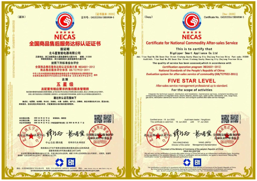 2020年6月,歷經(jīng)嚴(yán)格審核,北斗星集成灶從眾多品牌中脫穎而出,榮獲售后服務(wù)認(rèn)證中的“五星級售后服務(wù)認(rèn)證”和“七星級(卓越)售后服務(wù)體系認(rèn)證”雙認(rèn)證。這意味著北斗星售后服務(wù)質(zhì)量達(dá)到了國家最高標(biāo)準(zhǔn),樹立行業(yè)服務(wù)標(biāo)桿!