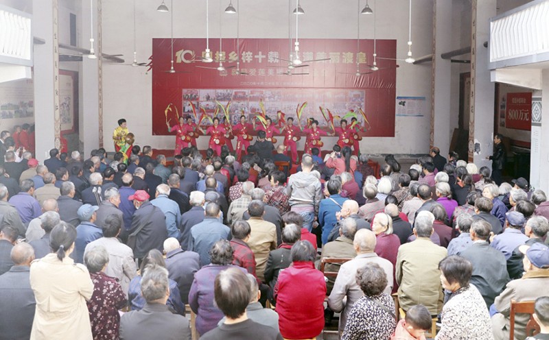 “回報鄉(xiāng)梓十載,情滿美麗渡皇”。10月25日,在這個值得慶賀的吉祥日子,新昌縣渡皇山文化禮堂人頭攢動、載歌載舞,全村老少齊聚文化禮堂,歡度九九重陽節(jié),感受濃濃敬老情。