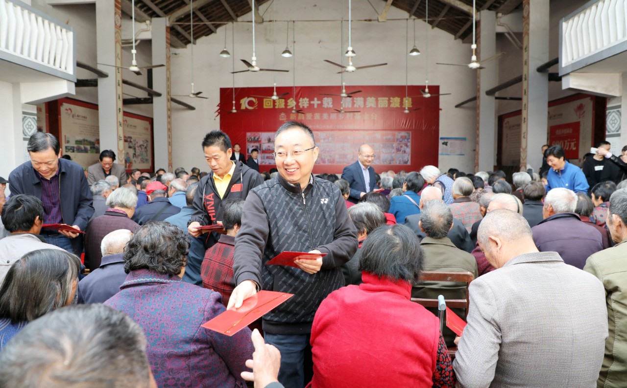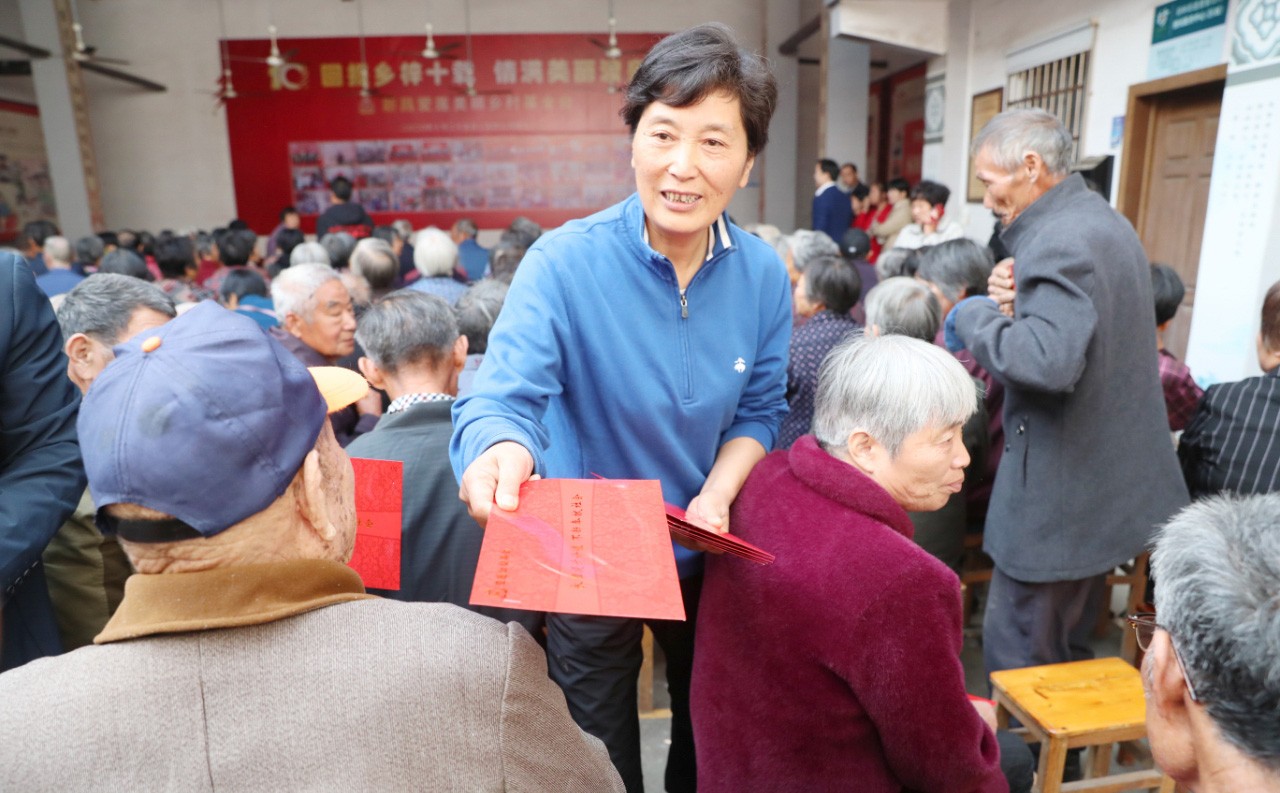 一聲問候,兩句細(xì)語,談話時溢出無處不在的濃濃情意。儀式現(xiàn)場,基金會為60周歲以上老人、新婚夫婦及入學(xué)兒童、大學(xué)生發(fā)放了長壽金、幸福金、學(xué)優(yōu)金,為鄉(xiāng)親父老們送去了節(jié)日的祝福,傳遞著重陽節(jié)的濃濃溫情和關(guān)愛。
