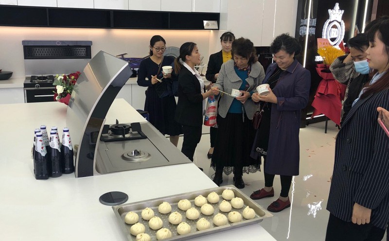 開業期間,現場擠滿了前來參觀的客戶,人頭攢動,熱鬧非凡!足見北斗星重慶南坪新店開業的火爆程度。活動現場,客戶紛紛前來體驗咨詢,工作人員演示了機王A6蒸箱操作,用嫻熟的技藝為大家制作了包子。隨著美食從蒸箱一一出爐,原汁原味的食物口感,贏得到了客戶們的青睞和好評。加之,北斗星集成灶有著強效快速吸油煙魔力,"天一無縫"專利臺面,讓機王A6成為現場的品牌明星!