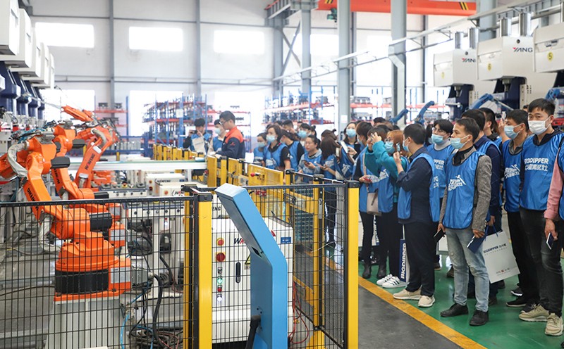 在培訓團隊的帶領(lǐng)下,新商學員們實地參觀萬豐航空特色小鎮(zhèn)的強大制造基因,親身參觀北斗星智能工廠的震撼場面,了解萬豐集團“千億航母”的強大背景,紛紛感嘆“北斗精神、匠心智造”實至名歸。