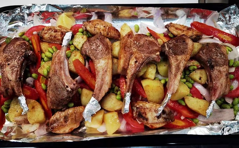 先蒸后烤,蒸菜新鮮出爐之后,再烤上一盤(pán)羊小排!用做一個(gè)菜的時(shí)間可完成8道美味,簡(jiǎn)直絕了!